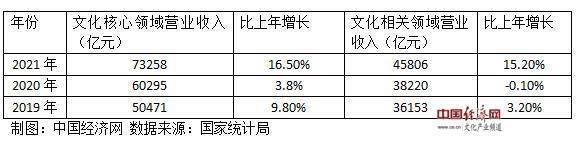 国家统计局数据显示,2021年,在全国规模以上文化及相关产业中,数字文化新业态特征较为明显的16个行业小类实现营业收入39623亿元,比上年增长18.9%;两年平均增长20.5%,高于文化企业平均水平11.6个百分点;占文化企业营业收入的比重为33.3%,比上年提高0.8个百分点。其中,可穿戴智能文化设备制造、互联网广告服务2个细分行业营业收入两年平均增速分别为46.4%和31.8%。