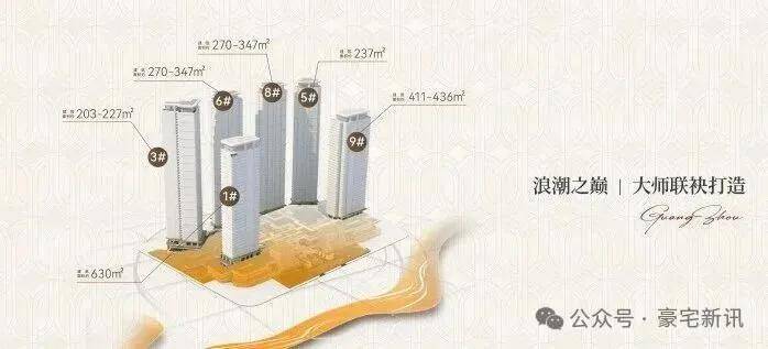 全盘仅规划建设6栋35-50层高的超高层江景住宅,整个项目采用前高后低(南低北高)的阶梯式半围合布局,使得每一户都能拥有南向望江的绝美景观。