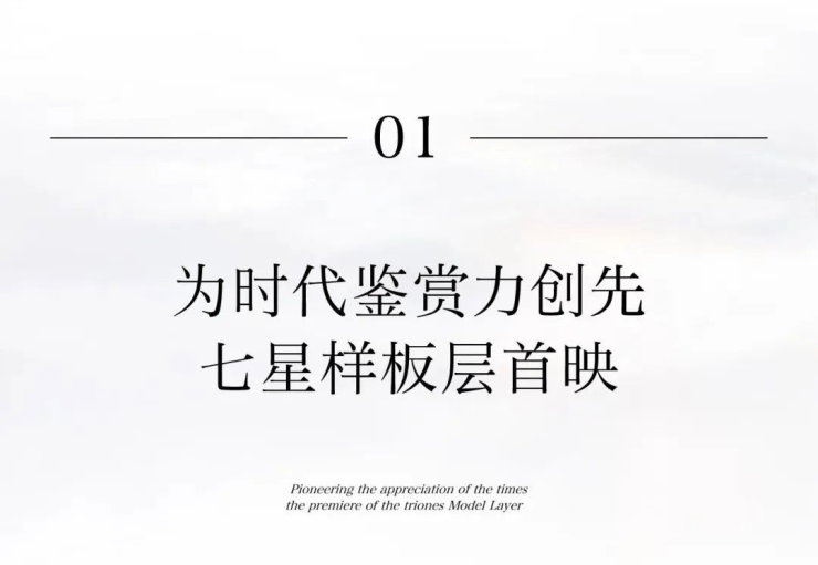 七星潮鸣面向的是一群具有世界阅历,拥有独到审美触觉的领潮者。七星潮鸣与之共鸣,开创性打开七星样板层,以品质实景兑现品位与生活追求。荟萃6套风格迥异的样板美学作品,3位国际大师执笔设计,5大顶尖软装团队联袂精研,于约2600方的尺度中呈现,为杭州带来全球七星恒产的美学示范。