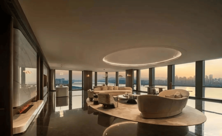 CCD创始人郑忠先生, 以“东意西境”理念,熔铸东方意境与全球视野打造约875㎡「观潮」,于云端将社交与生活美学场域打开,共融私人品鉴、社交、藏赏多重美学,构筑都会伊甸园秘境。一隅奥体钻石之角,揽杭州中轴,日月同辉、大小莲花碗入怀,钱塘江潮、西湖云山展卷,如千年江山恒景画卷只此臻赏。