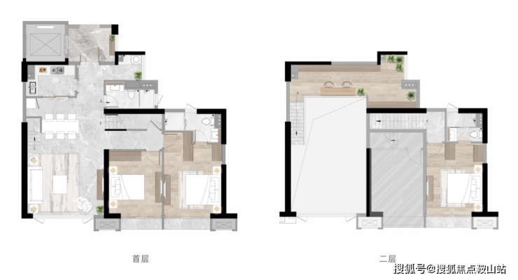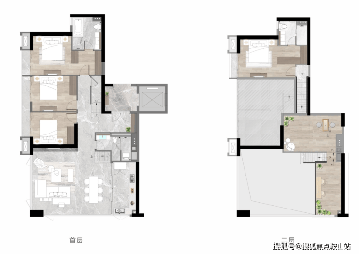 【E2#·A户型】建面约223㎡ 五房两厅三卫私享独立电梯厅,奢享私密入户体验全空间景观面,约25米一线江景延展双主卧套房设计,上下双主卧套房设计夹层多功能活动空间。