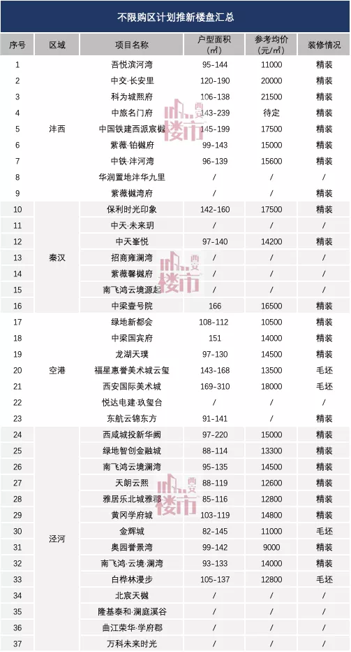 其中,沣西新城:万科沣华锦鸣、香榭汇沣、沣水云岭3盘被限购,而科为城、中旅名门府、中交长安里、中铁沣河湾、华润置地沣华九里等盘仍然不限购。