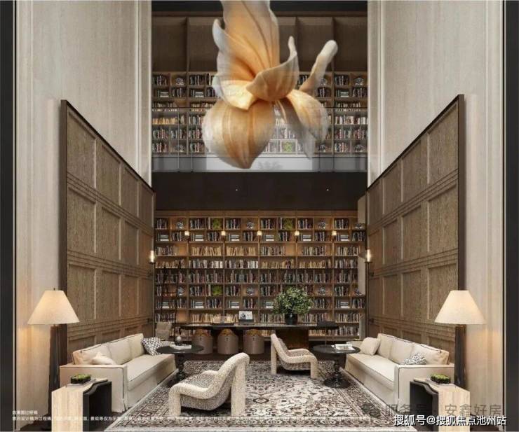 下沉式会所包含私宴厅、影音室、艺术书吧、健身房等空间,还有四大主题架空层泛会所,同时依托保利文化资源,打造瑰丽艺术CLUB·圈层社群,满足业主高端圈层的社交需求。