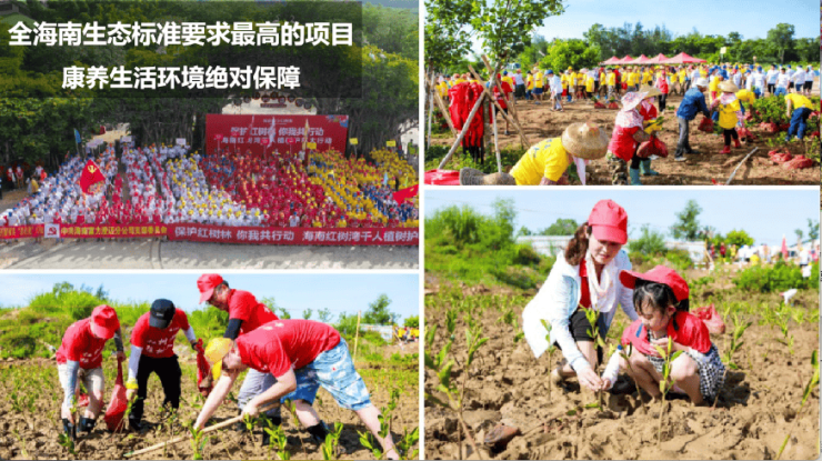 项目配建:红树林湿地公园、红树湾医院、健康管理中心、星空营地、文体中心、运动公园、红树湾生态疗愈中心等20大配建;
