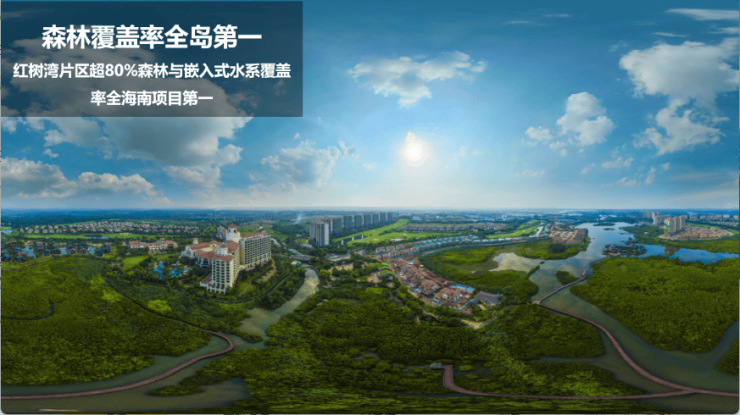 1、森林覆盖率全岛第一:红树湾片区超80%森林与嵌入式水系覆盖率,全海南项目第一