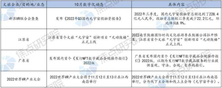 文旅数字化动态:《2022年Q3国内元宇宙投融资报告》发布,2022年世界VR产业大会前瞻