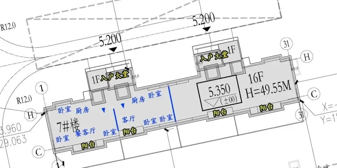 从平面设计图可以看出,基本上为一梯两户的设计(注:这里的梯指的是楼梯,不是电梯;电梯疑似为1梯1户),每个单元都从北侧进入,会有一个入户大堂设计;以7#楼西单元为例,从结构上推测户型:
