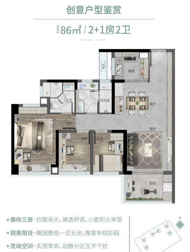最实用 | 86㎡ 2+1房·全开间南向