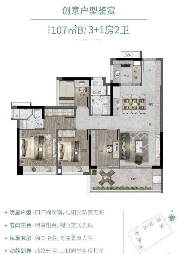 最舒适 | 107㎡ 3+1房·南北对流