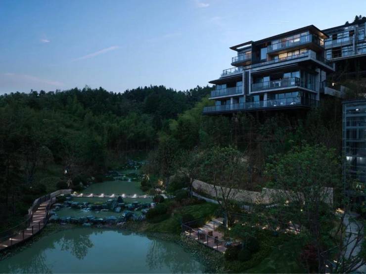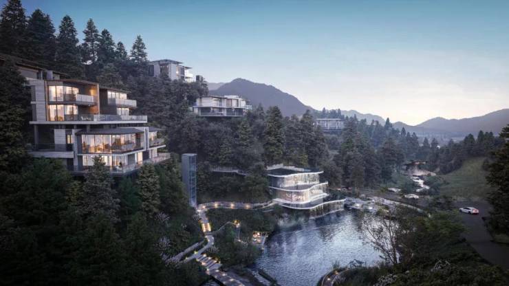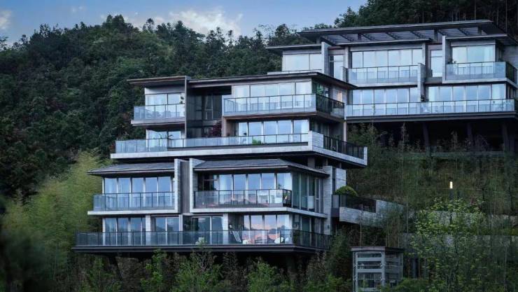 尤为引人注目的是那些依山而建、错落有致的玻璃山房。它们不仅是居住的空间,更是艺术与自然的完美融合。每一栋玻璃山房,都像是精心雕琢的水晶宫殿,既保留了东方传统建筑的韵味,又融入了现代设计的简约与时尚。在这里,你可以透过晶莹剔透的玻璃,与窗外的杉林对话,感受那份来自大自然的呼吸;你也可以漫步于露台之上,让身心完全沉浸在青山绿水之中,仿佛整个世界都为你静止。