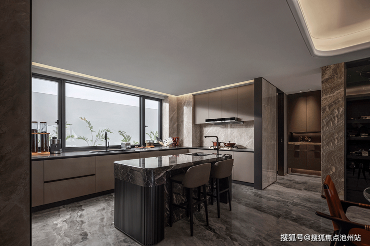 厨房中岛使餐厨部分形成环形动线,另一方面也增加了厨房的使用功能,种种生活物品的累积下,慢慢加载主人的理想生活状态。
