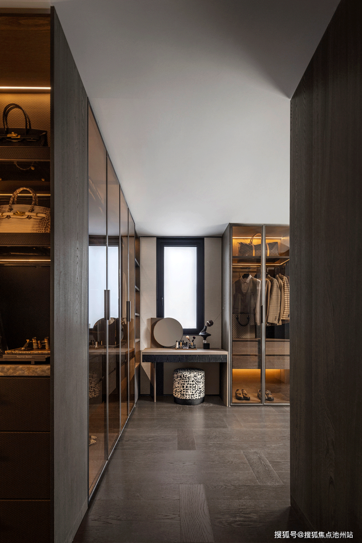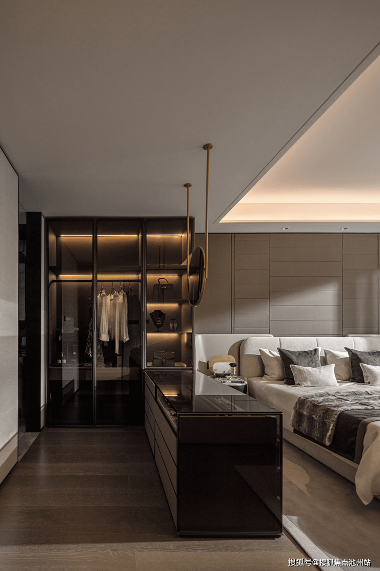 主卧采用开放式衣帽间的设计,光线可以不受阻碍的扩散,增加主卧的尺度感。
