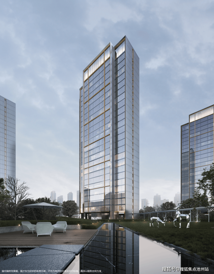 从当代国际艺术审美出发,温州瑞府立面造型汲取光幕美学灵感。用现代建筑语言与精湛工艺,采用大面积的玻璃材料,勾勒出更为简约轻盈、更具现代艺术感的形象立面。