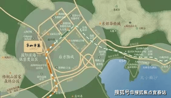 生态·人文:【LOOK】 ★半山半海位居深圳的龙脉——梧桐山半山之上,三面环山,乃绝佳私密之地,将打造成梧桐山系顶峰私密豪宅,可远眺大鹏湾,正如案名所言——一半为山,一半为海。