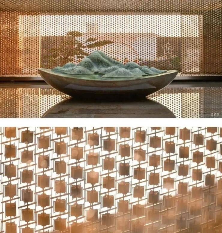 取春天清风徐来、水波不兴的意象,以“广绣隐现、幕墙灵动”为设计概念,打造泗水归堂空间入口照壁屏风,彰显归家尊贵感与品质。