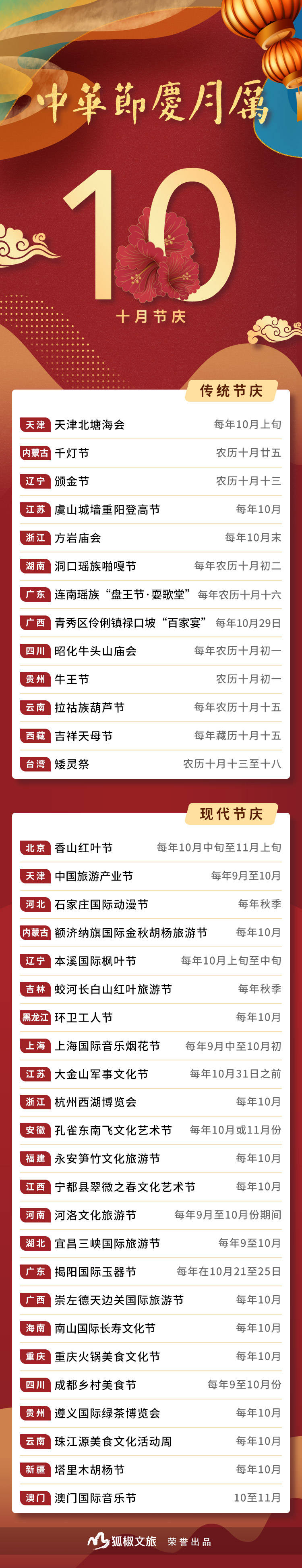 由狐椒文旅推出的《中华节庆月历|10月节庆》发布。