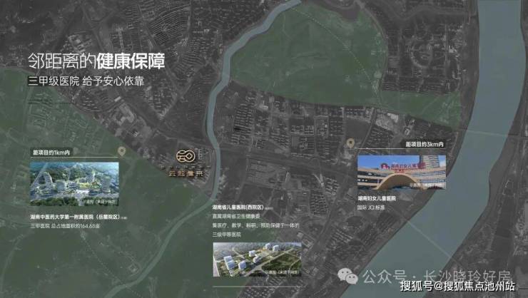 项目周边坐拥三甲级医院,湖南中医药大学第一附属医院(岳麓院区)(在建),距项目约1km、湖南妇女儿童医院,距项目约3km、湖南省儿童医院(西院区)(规划中),完善医疗配套,邻距离的健康保障