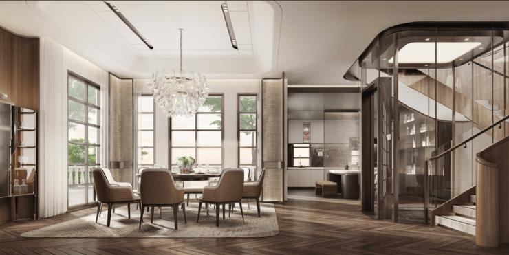 奢阔建筑体系,双层挑空入户大堂、动静分离的室内规划、中西厨、中西餐厅等等!