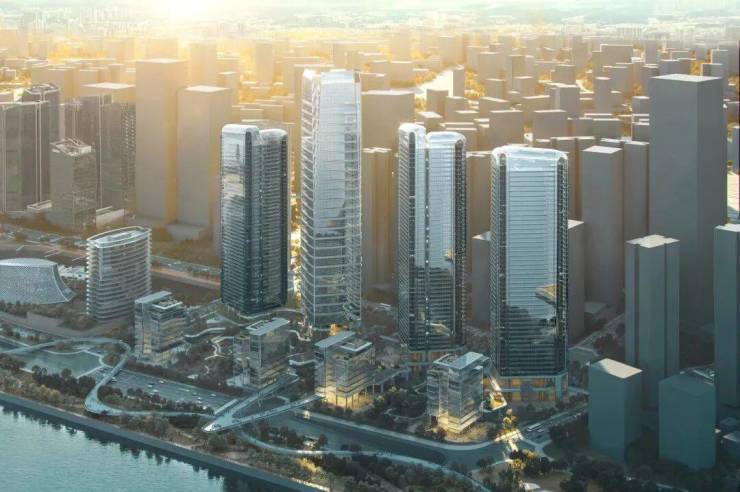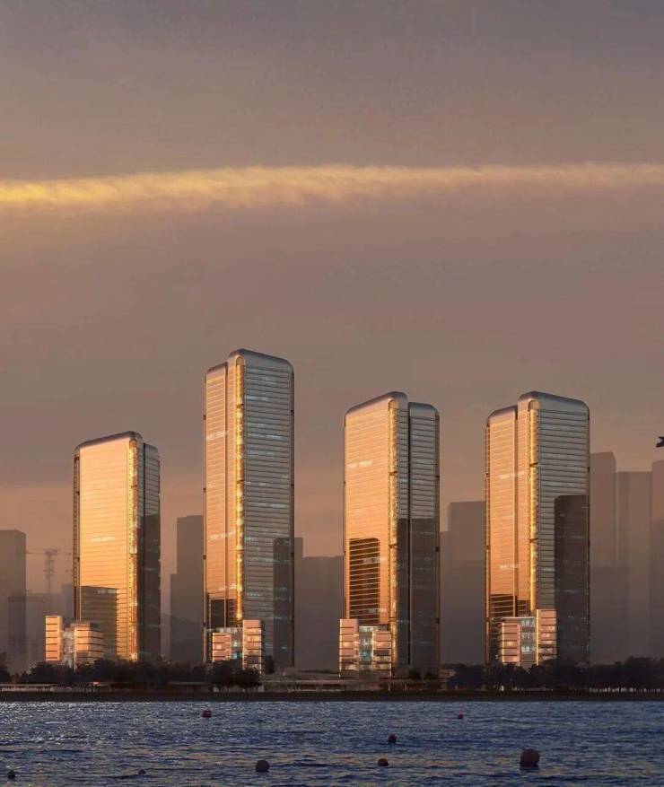 项目首期主要由两座分别楼高50层,总建筑高度210.3米以及楼高48层,总建筑高度202.5米的商业大楼组成,另在江边有两座矮座总部办公大楼。