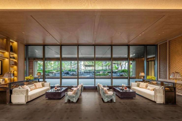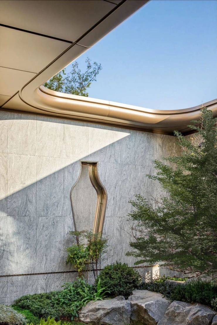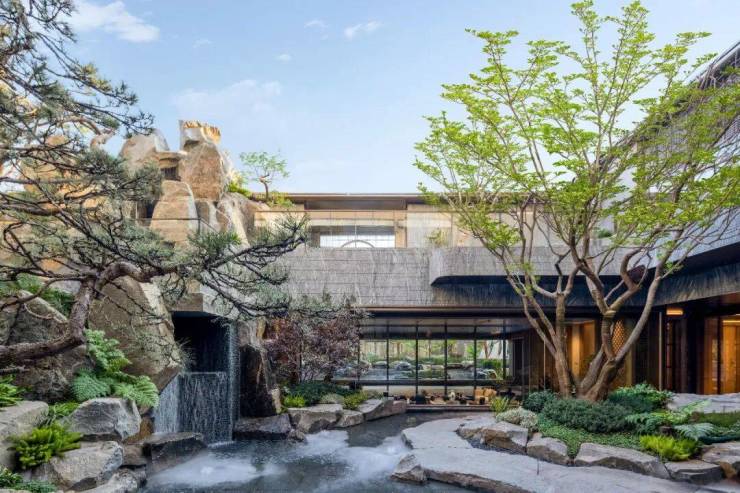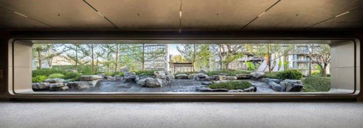 下沉式庭院以《万壑松风图》为灵感,通过叠石、流水、苍松,营造出可游可栖的立体山水意境。