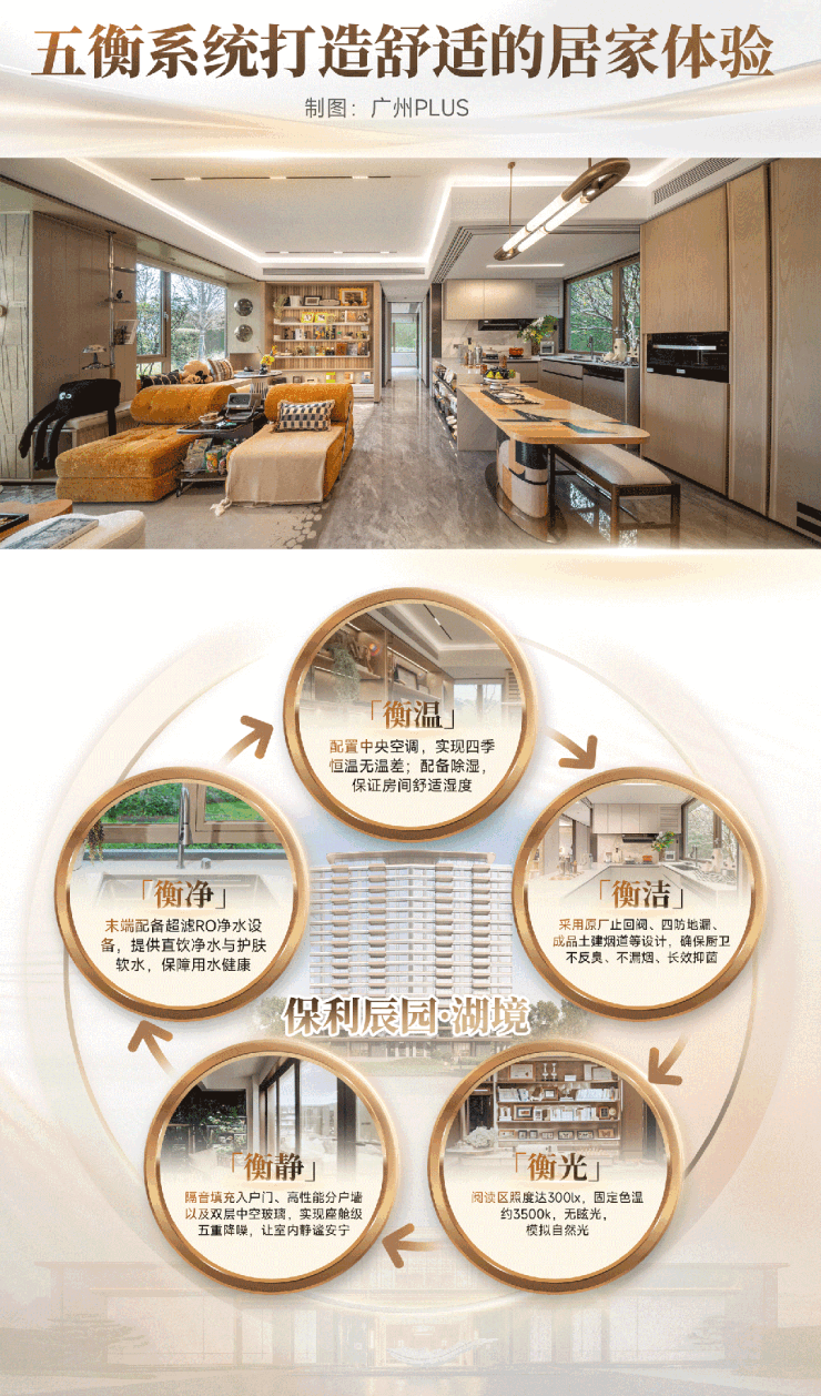 无论面积大小,保利「五衡系统」都是全线标配,即衡温、衡净、衡洁、衡静、衡光。