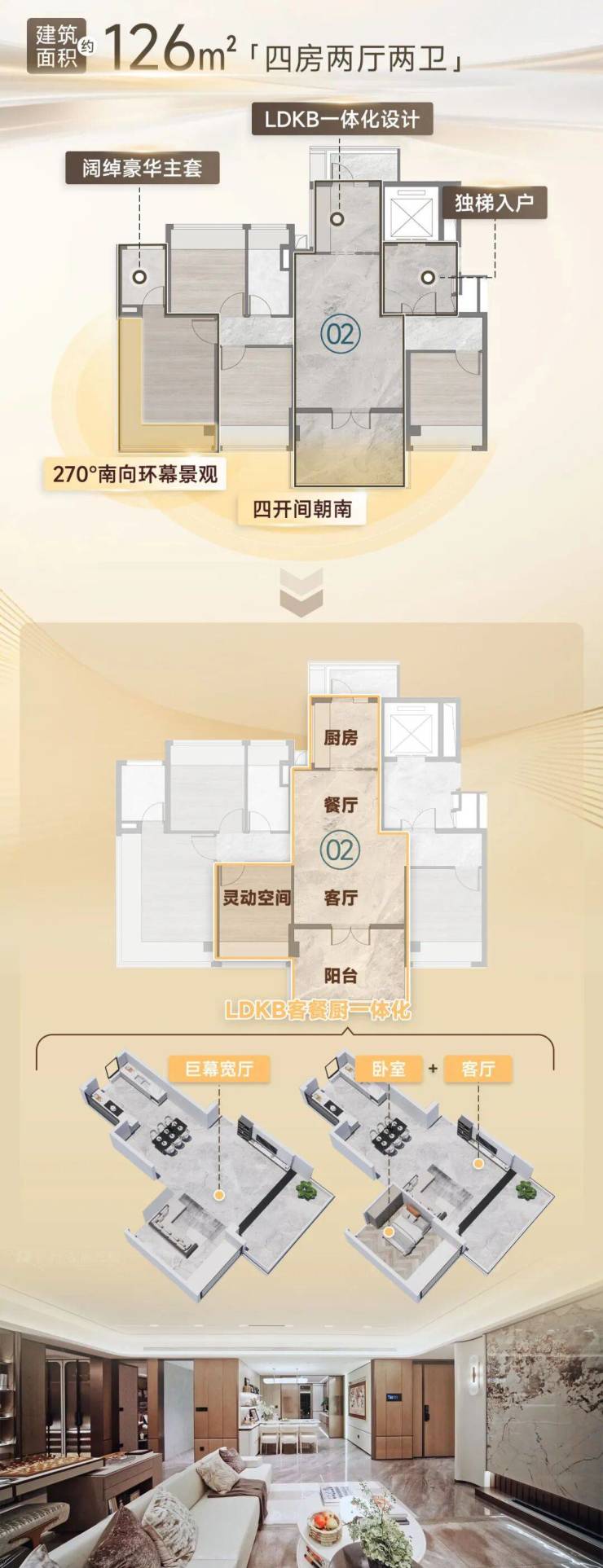 如果追求一步到位的改善,建面约126㎡户型,则是终极选项。
