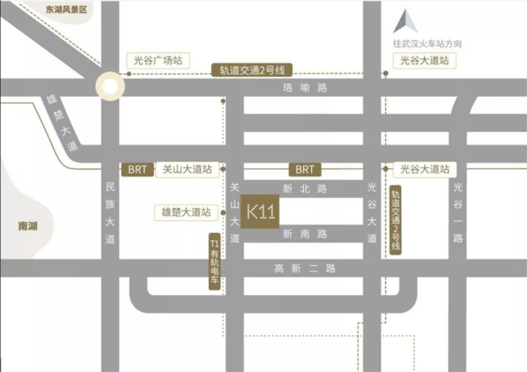 武汉K11位于解放大道与利济北路交汇处,地处华中商业的黄金区域——武广商圈。汉口K11所处的商圈雄踞华中排名前列商圈最核心地点。根据官方信息显示,5km辐射170万城市人口。