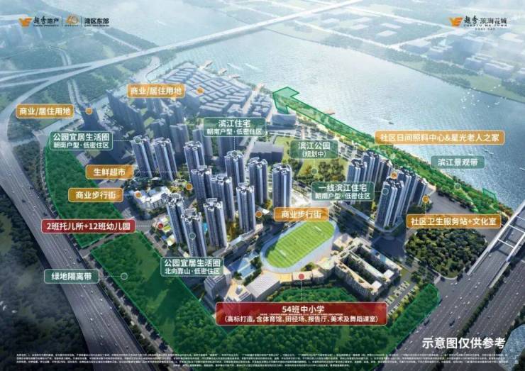 项目自带2班托儿所+12班幼儿园+54班九年一贯制中小学,携手广外教育集团,2025年移交给教育局,家门口轻松解决2-15岁教育难题;