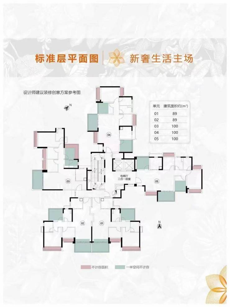 约100㎡(竖厅)四空间两厅两卫,南向四面宽采光面,敞亮通透,主卧带MINI吧、美妆台等休闲区