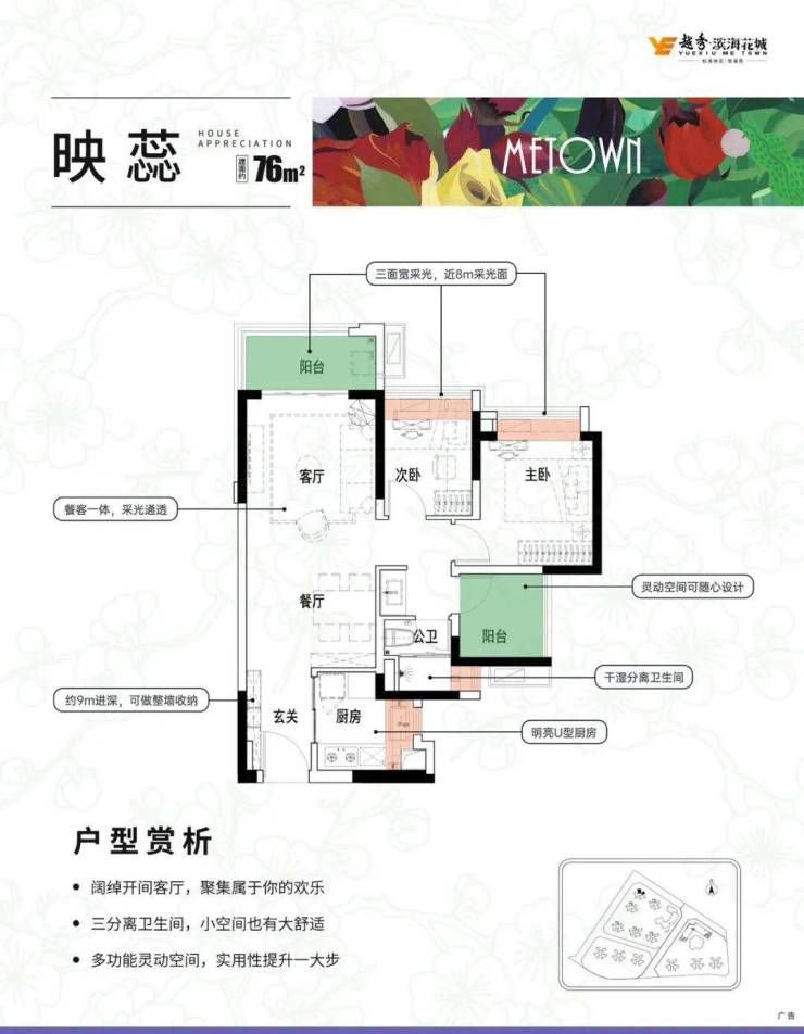 在户型设计方面,越秀·滨海花城充分考虑到刚需购房者的实际需求。目前准现房的产品有76方和84方的户型。