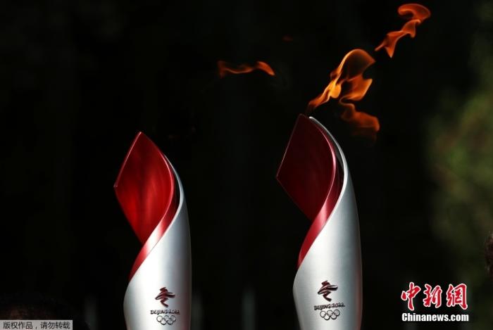 当地时间10月18日,北京冬奥会火种在奥林匹克运动的发祥地——希腊伯罗奔尼撒半岛的古奥林匹亚采集成功。在有着两千多年历史的赫拉神庙遗址前,奥运火种再次为北京点燃。图为北京冬奥会火炬。