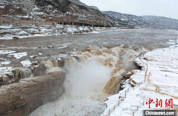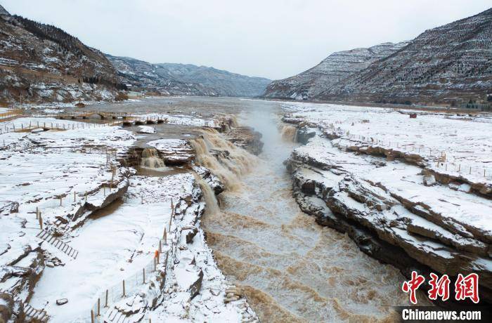 1月14日,农历腊月二十三,陕西黄河壶口瀑布旅游区开园迎接八方游客。同时,黄河晋陕峡谷也迎来2023年首场降雪。雪中的黄河壶口瀑布尽显“冬日风情”,水流湍急,瀑布两岸披上了银装,十里龙槽波涛汹涌,宛如仙境。
