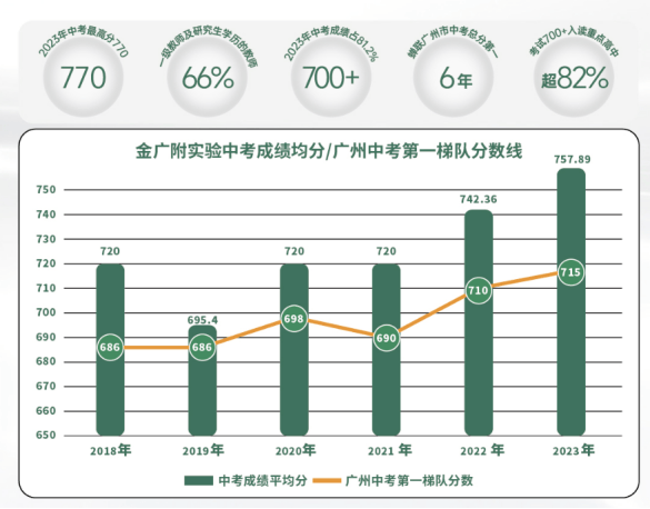 白云广附云湖学校师资亦是势力雄厚,近年来,白云广附中考成绩一直名列广州前茅,以白云广附核心学校金广附为例——继广州中考成绩五连冠后,2023年又拿下了广州中考最高分770的好成绩。2023年5月底,广州市招考办公布2023届广州中考自主招生初审名单,入围人数为全市之首。(信息来源:金广家委会)