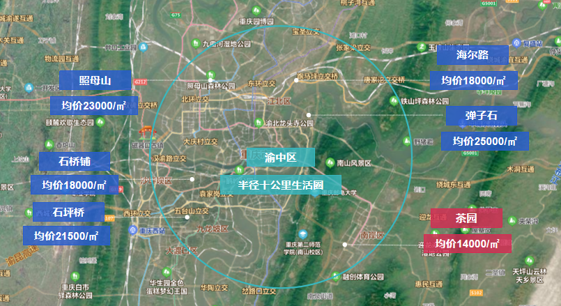 以渝中半岛为圆心,主城十公里黄金生活圈内,大部分典型板块的新房都徘徊在单价20000元/㎡。