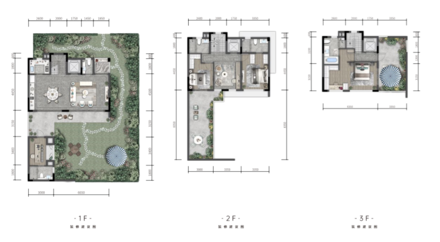 底层超大花园面积,上跃两层均带露台(注:由于户型不同,每户花园形状及面积存在差异,具体以户型图为准)。