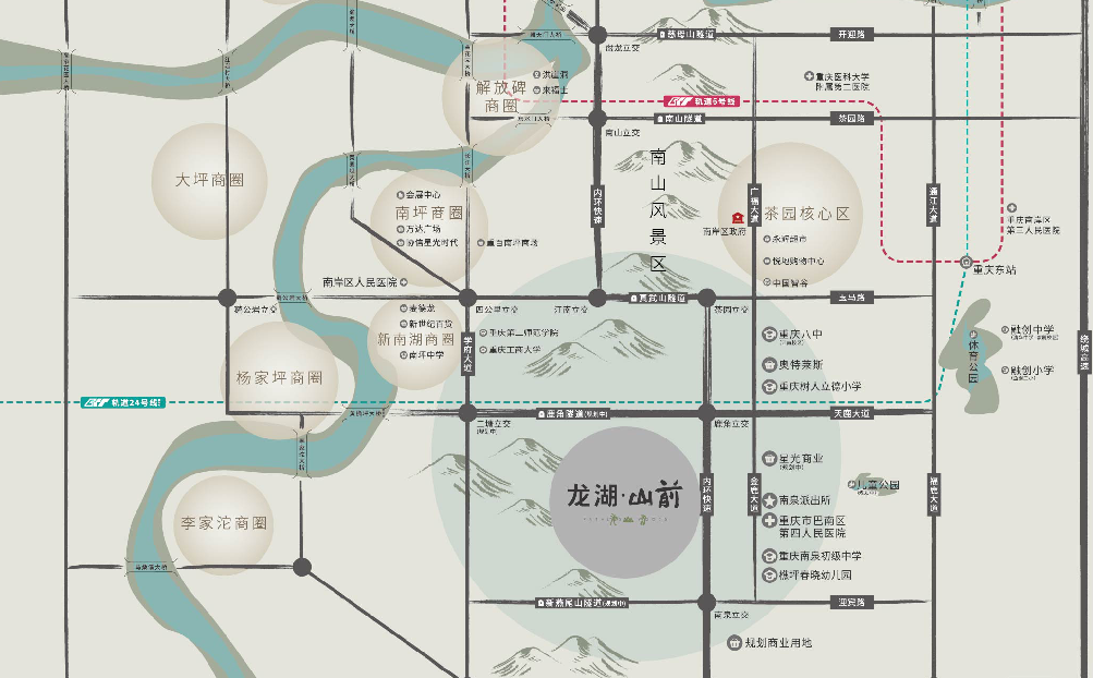 并基于整个泛茶园板块形成辐射九龙坡、南岸、渝中半岛、巴南等四大板块的中央居住区。