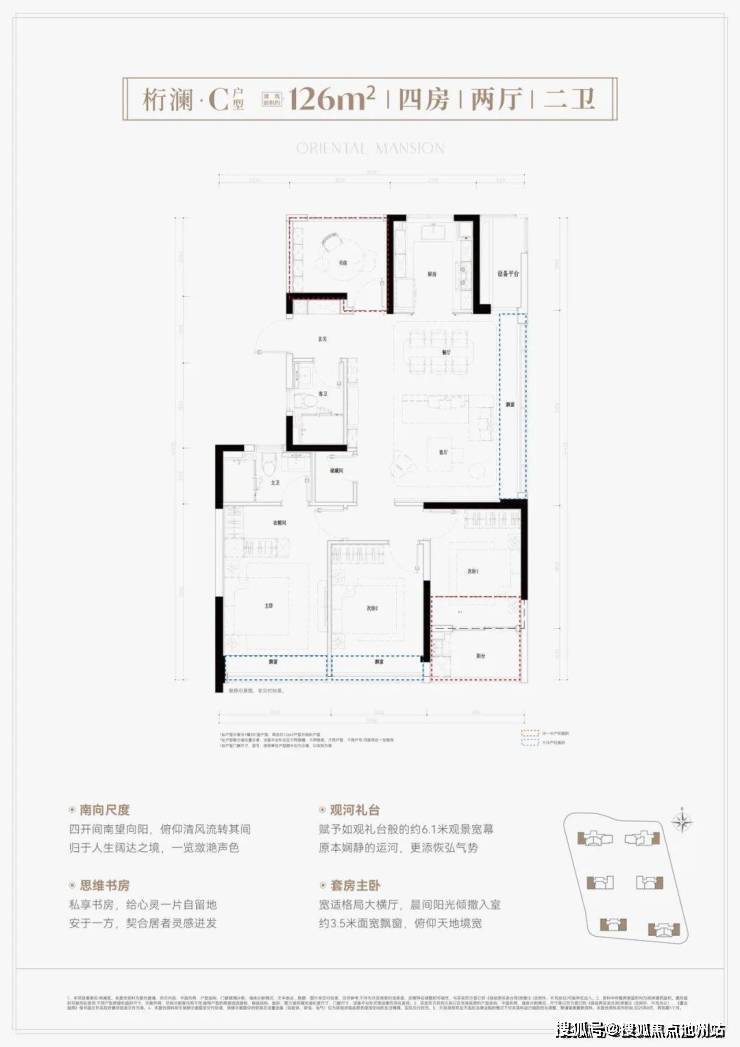 建面约126方户型:大边厅+南向的阳台,还有大套房,内含卫生间以及衣帽间,再加上独立的储藏室,收纳空间满分。