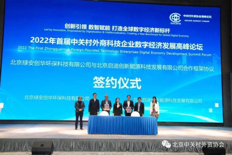 活动现场的签约环节,通标标准技术服务有限公司与河北鑫宏源印刷包装有限责任公司、比特视界(北京)科技有限公司与杭州倒映有声科技有限公司、北京绿安创华环保科技有限公司与北京启迪创新能源科技发展有限公司、北京中关村外商投资企业协会与北京国研网信息股份有限公司在现场领导、嘉宾的见证下,上台签署战略合作协议,为数字经济的建设和发展开启了合作的新篇章。