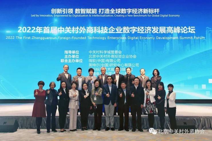 2022年10月12日在中关村科学城管委会指导下,北京中关村外资协会与微软(中国)有限公司、英特尔(中国)研究中心有限公司、通标标准技术服务有限公司、威盛电子(中国)有限公司四家知名外企联合成功举办“2022年首届中关村外商科技企业数字经济发展高峰论坛”。以“创新引领·数智赋能·打造全球数字经济新标杆”为主题,旨在搭建一个产学研共同参与交流互动的平台,发挥中关村外资企业的技术研发优势,相互借鉴,相互交流,形成合力,共同探讨数字经济新趋势,从国际视野为北京全球数字经济标杆城市建设建言献策。