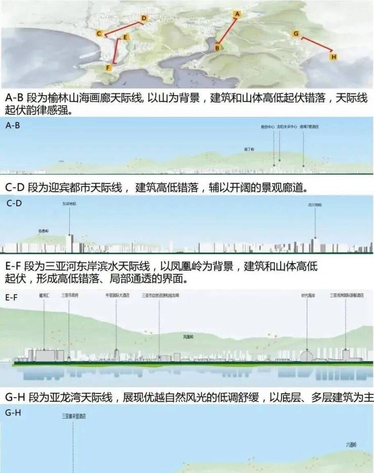 ◇依托吉阳客厅,利用嵌入腹地最深的榆林水岸,完成现有城市空间所缺失的内山与湾海连接、历史与未来连接、时尚与生态连接的城市水岸活力主轴。