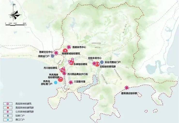构建地标门户的指引体系。地标体系分为高层地标建筑群和由公共文化设施、体育设施和大型市民活动中心组成的公共类地标群,门户体系由港口门户和站前门户组成。