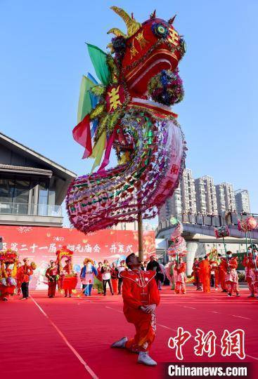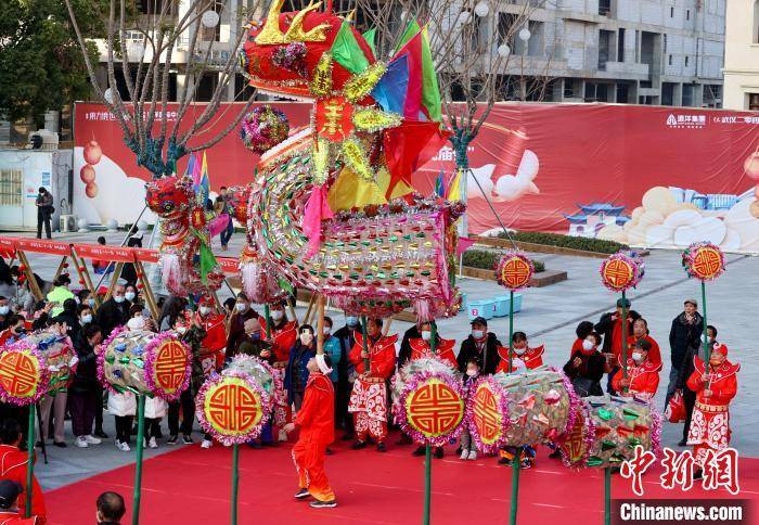 中新网武汉1月31日电 (武一力 虞倩雯 石琴)灯笼高高挂,大鼓声声响,高龙齐舞……第二十一届“归元庙会”31日在武汉市汉阳区远洋里广场开幕。众多市民游客前来逛庙会、品民俗、赏歌舞,体验热闹的“年味”。