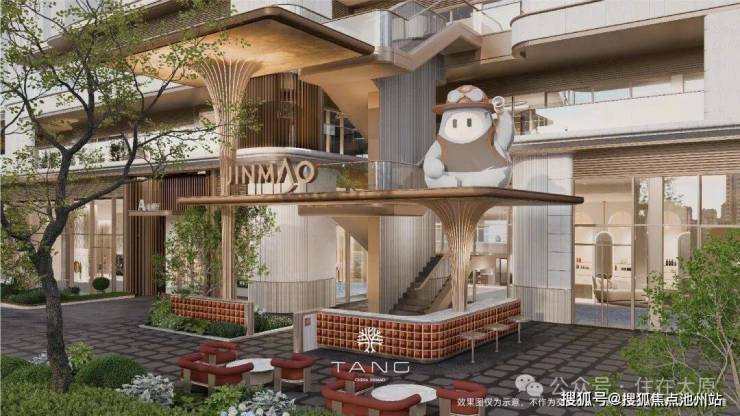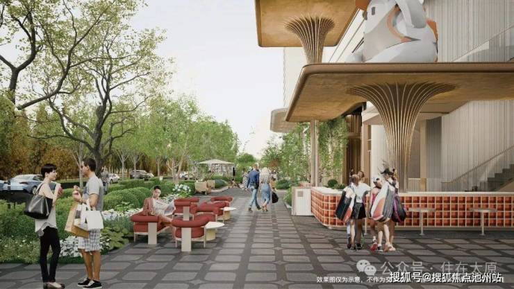 金茂采用的是一种“社区公共空间的自然衍生”,这条商街从本质上首先是“为业主服务”的。它通过绿植软隔断、景观IP与漫步道,柔性地划分了社区与城市的界限,既保持商业的活力,又延续社区的舒适与归属感。