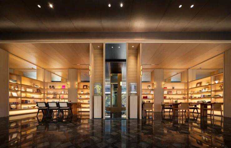 公区方面 ,西入口正对一棵挺拔的泰山油松、灵动的水景、与艺术感的屋檐共同构成一座现代语境下的“玲珑宝盒”,营造出从喧闹到宁静的情绪转换。