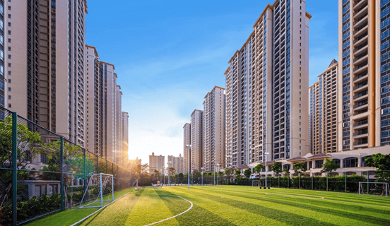 此外,还有约1.8万㎡运动公园。社区内配备足球场、篮球场、慢跑小径、儿童游乐园、阳光大草坪、庭院氧吧、凉亭等多场景休闲及运动空间。