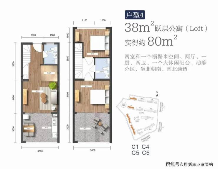 建筑面积38㎡,一室一卫,可变换两室,坐北朝南,南北通透,硬装交付