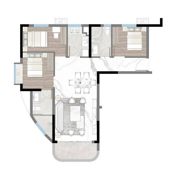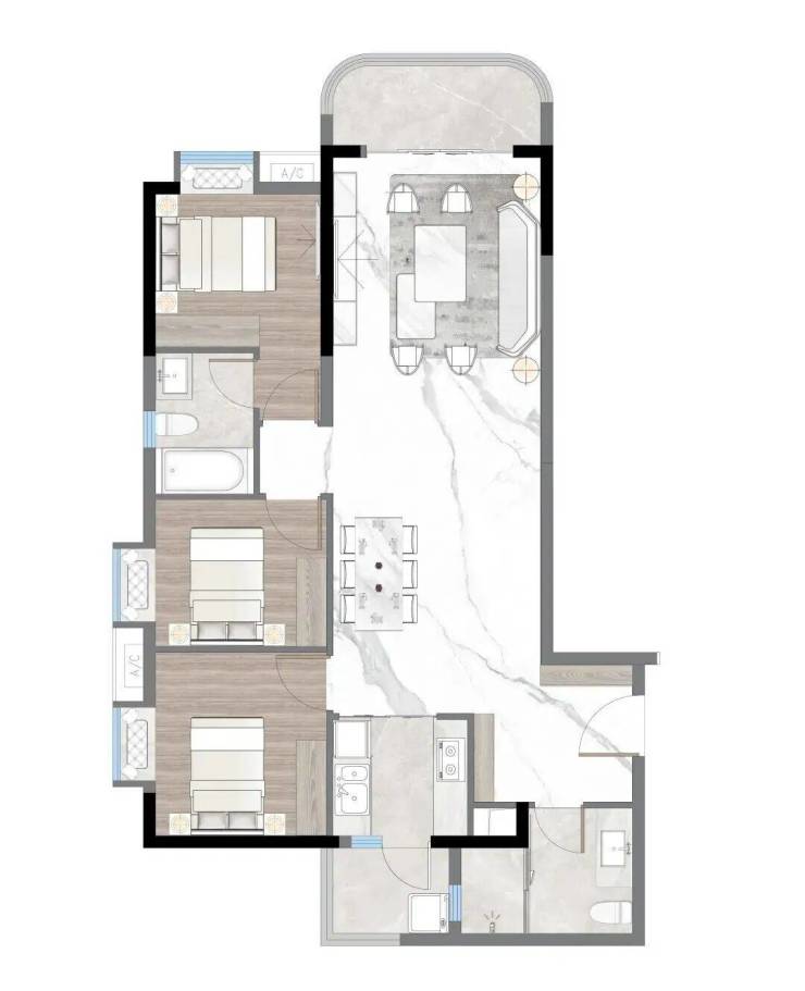 03户型:约110㎡,三房两厅两卫带主套