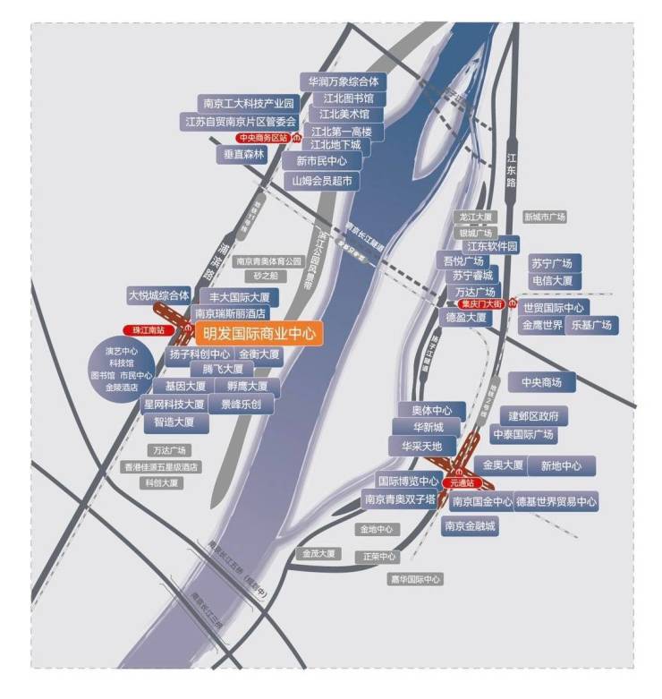 项目面前的浦滨路作为江北新区重要发展轴,堪称江北的“江东路”,最为精粹的城市商务配套都沿线布局。