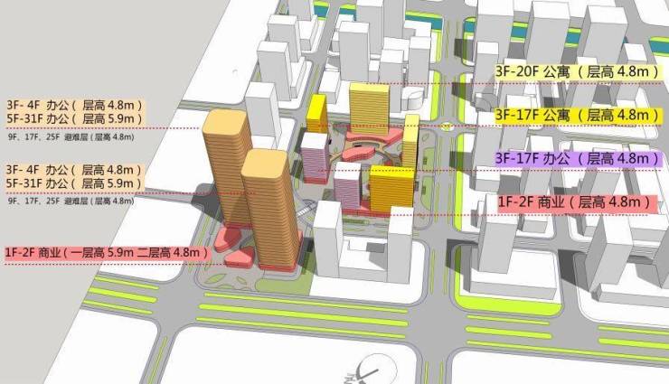 由AB两地块组成,总占地约6.2万方,总建面约40万方,打造集甲级办公、菁英公寓、主题商业于一体的多功能商务集群