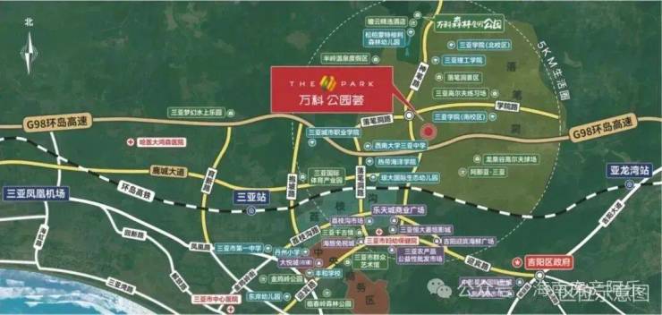 ◉ 三亚的城市规划为“一心、两翼”布局,西起崖州湾,东至海棠湾,万科·公园里位于城市中轴,“一心”北端,紧邻三亚中央商务区,先享发展机遇。